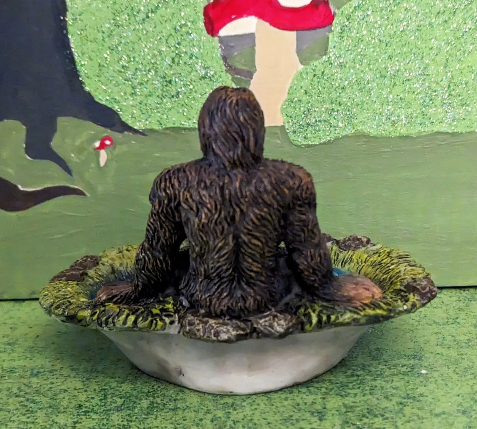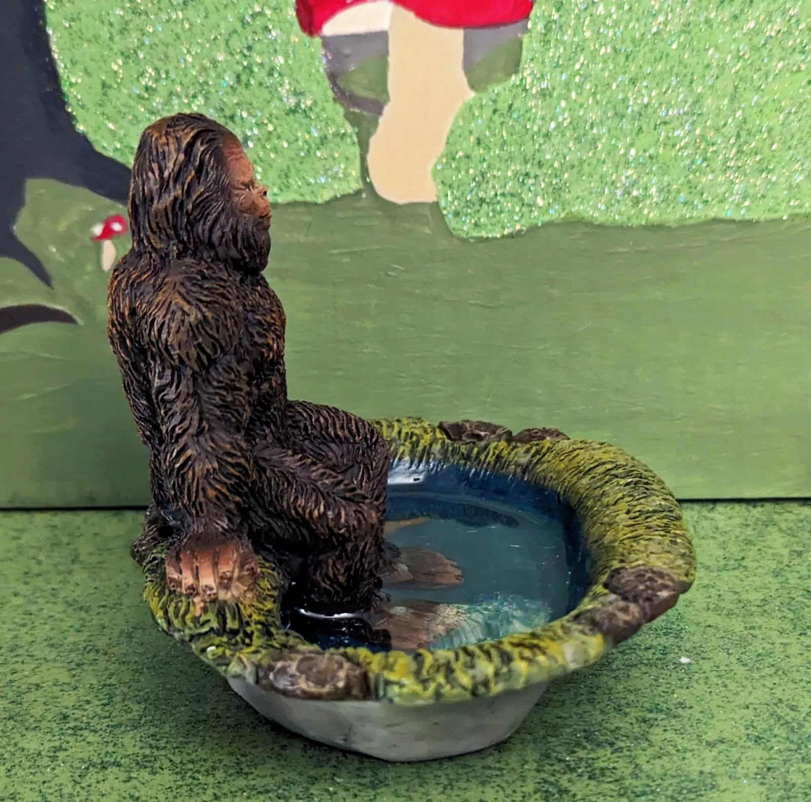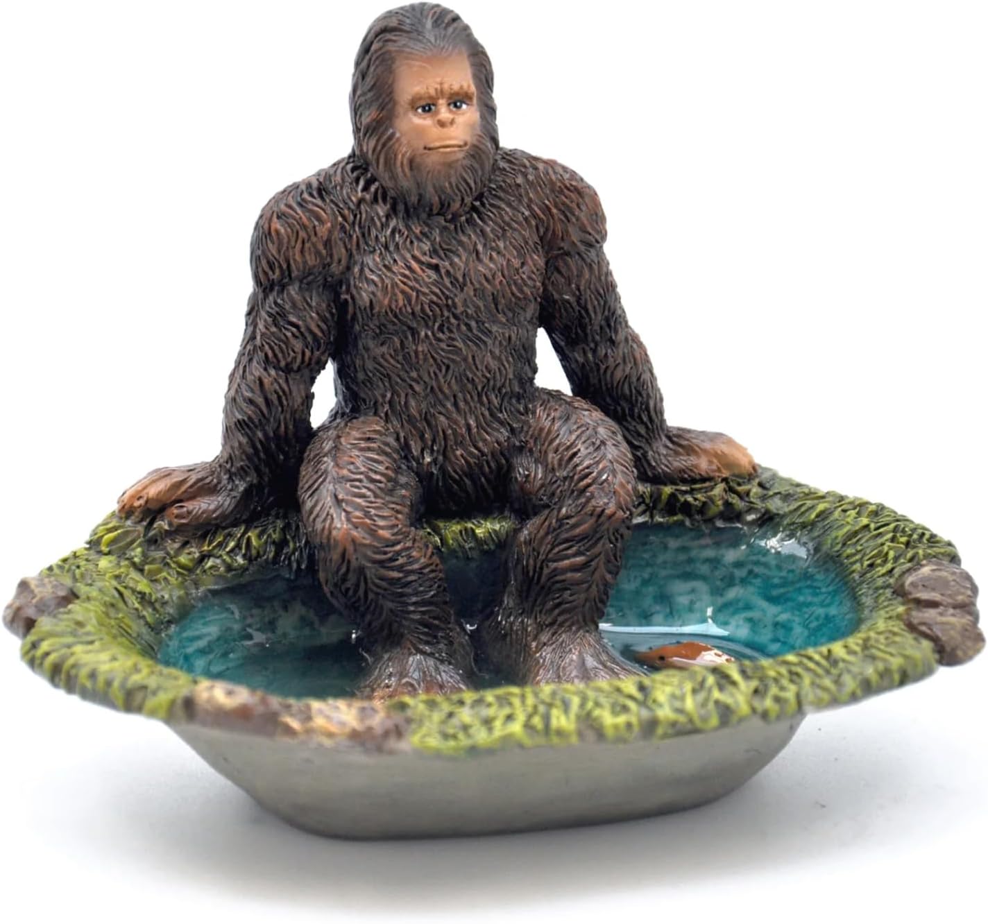 This miniature figurine features Bigfoot relaxing as he soaks his feet in a serene, moss-rimmed pond, accompanied by two playful fish. Perfect for nature lovers and collectors alike, this charming piece adds a touch of whimsy to any setting. Bring home this delightful scene and let Bigfoot remind you to take a moment to unwind in nature!