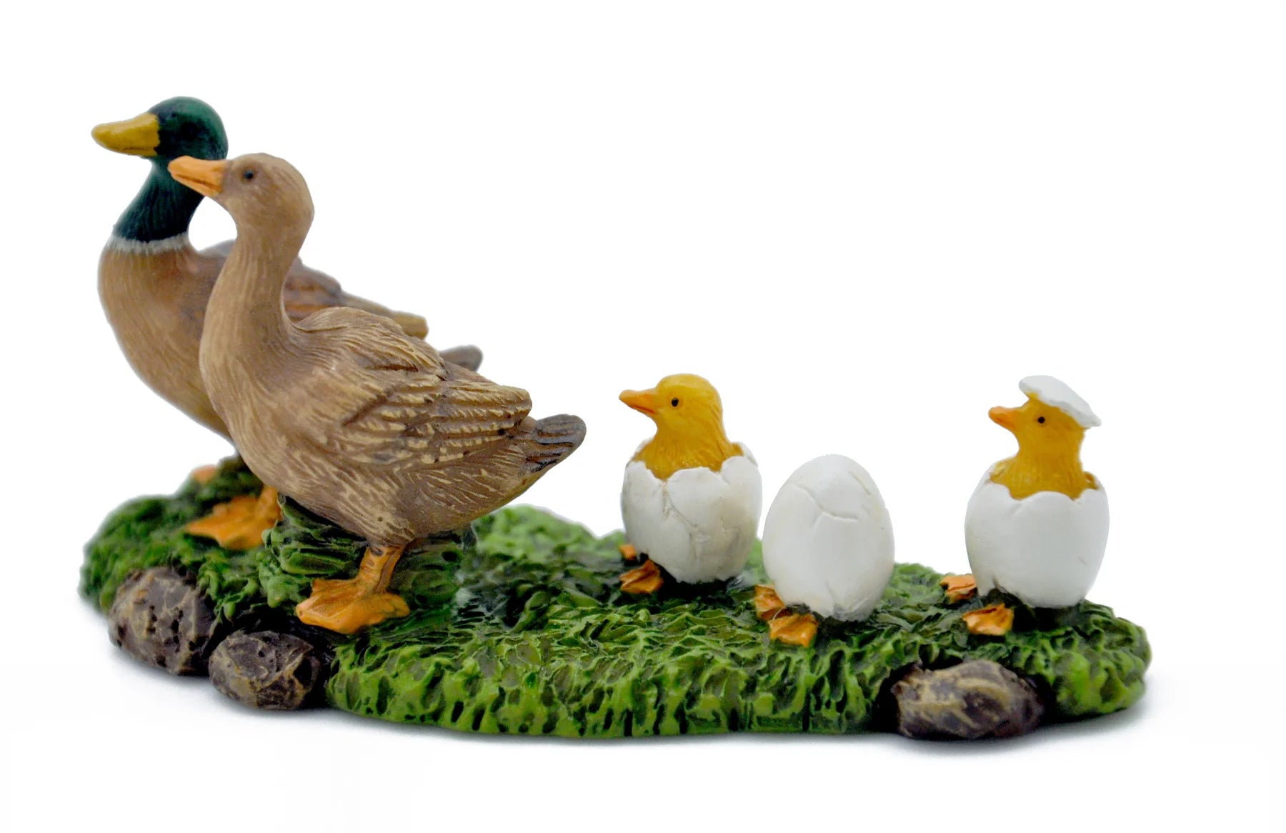 Transform your fairy garden, miniature garden, or terrarium into a heartwarming haven with our Momma and Daddy Duck figurines, accompanied by their adorable trio of duckling hatchlings. This enchanting family scene adds a touch of whimsy and charm to any miniature landscape. Let these delightful ducks waddle into your miniature world, bringing joy and a sense of wonder to every corner they inhabit.