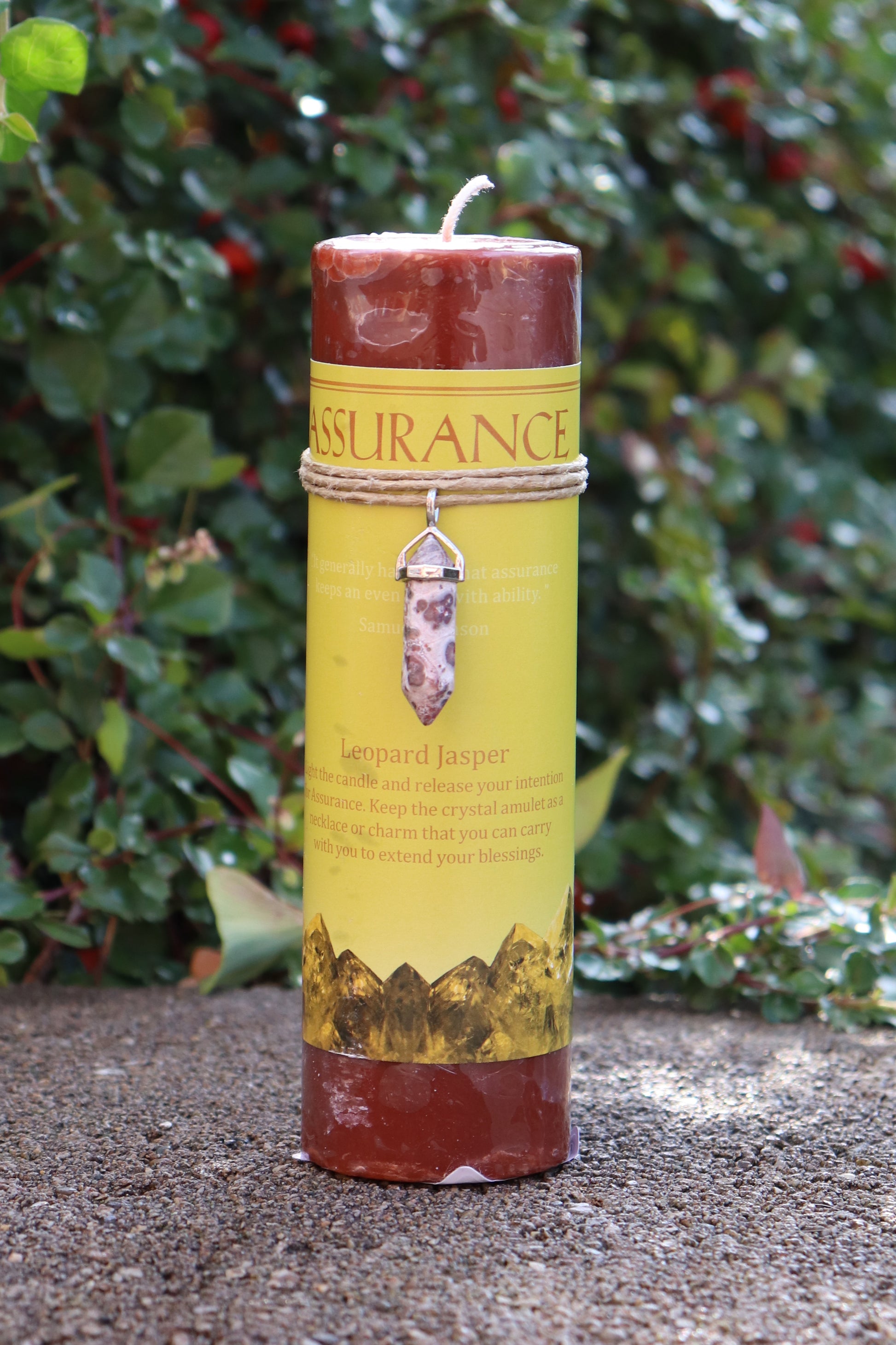 Beautiful with a brown wax, this pillar candle is ready to support your ritual and spell work to surround yourself with your spirituality and path. Included with this candle is a lovely crystal pendant to wear your enchantment daily.