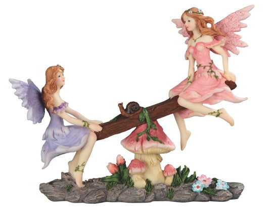 Watch these fairy sisters with sparkling wings play on a seesaw crafted from a log and mushrooms, with a tiny snail lounging on top.