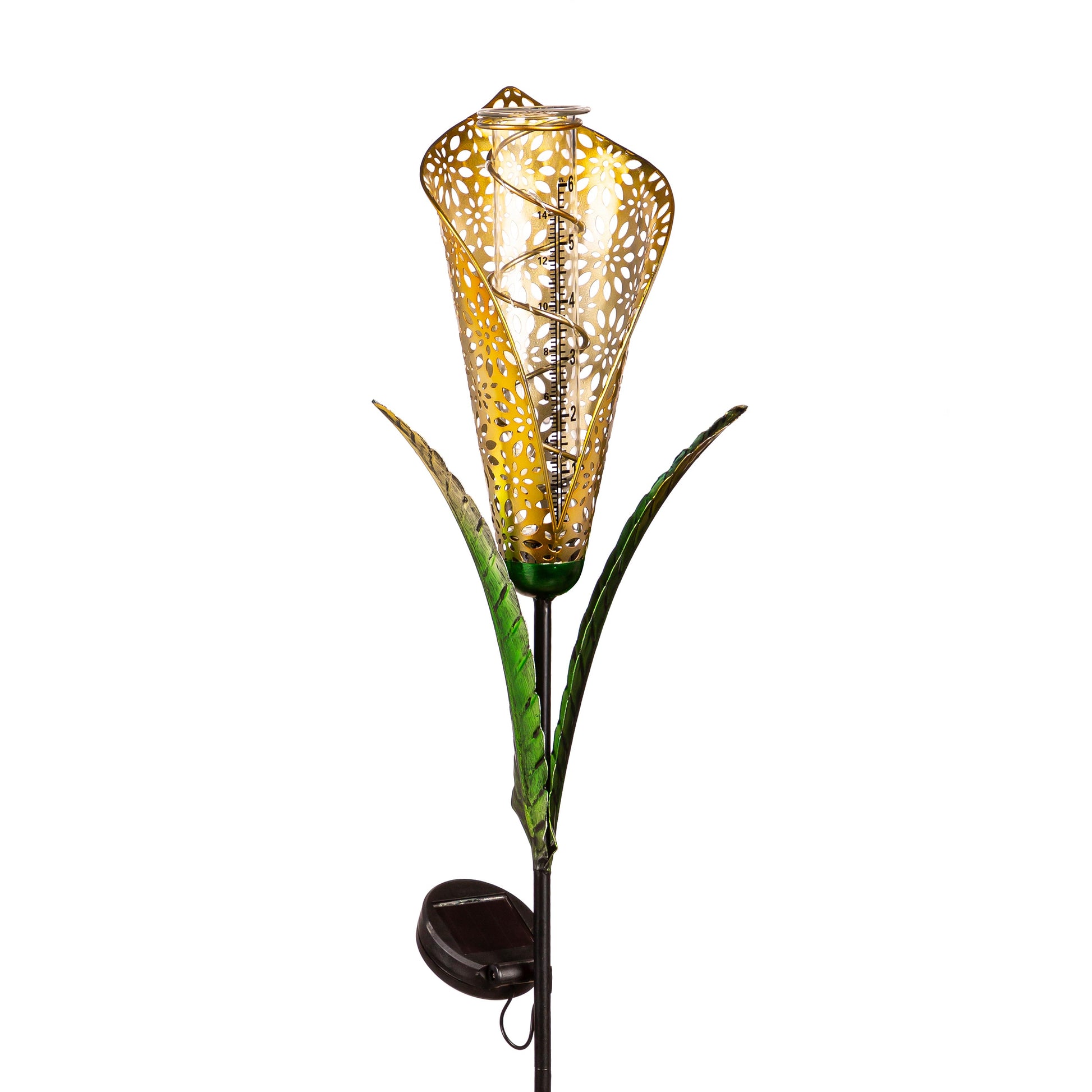 Fiber Optic Peace Lily Rain Gauge Garden Stake