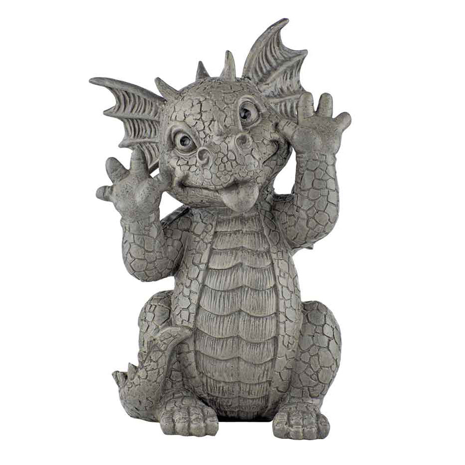 For the record, most dragons are large, scary, gold guarding, fire breathing lizards. This guy, on the other hand, prefers to guard your garden. The Taunting Garden Dragon will mercilessly tease any intruders off your land! Made from a cold cast resin, this cute, chubby little dragon is incredibly detailed and is hand painted to resemble stone. It is suitable for indoor and outdoor decoration. With his raspberry blowing face, this adorable little garden statue is sure to brighten up your landscaping or your home. Give him as a gift to a family member or loved one with a green thumb and watch them light up with delight!